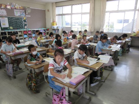 6月5日(火)4時間目は国語の授業でした。ひらがなワークを進めて、できた子から順番に先生に見てもらいました。