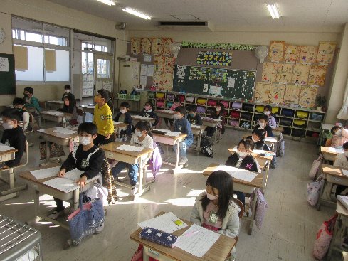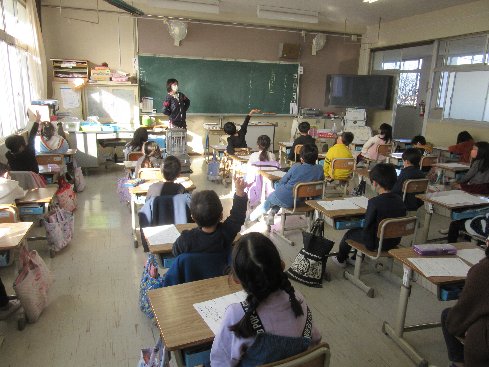 1時間目は国語の授業でした。「ともだちのことしらせよう」という、聞き取りをして紹介文を書く活動を行いました。