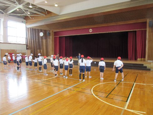 1時間目は体育の授業でした。昨日の総練習で、開会式の動きが、今ひとつしゃきっとしていなかったということで、最高学年としてびしっと決めるべく、練習しました。