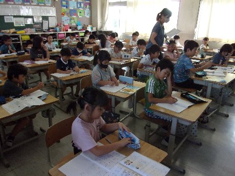 2時間目は算数の授業でした。「れんしゅう」で問題練習をして答え合わせをしました。