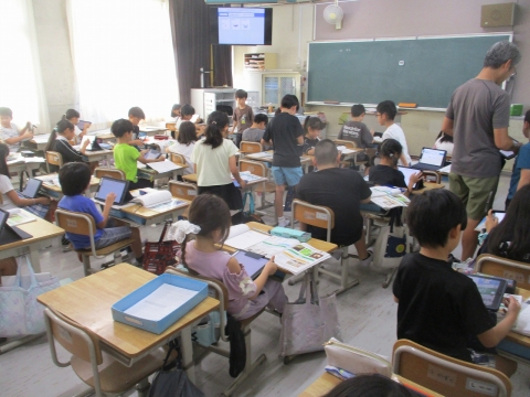 タブレット端末を使って、昆虫の体のつくりを調べていました。