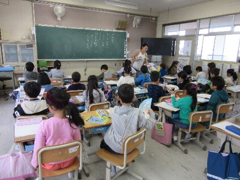 2時間目は初めての英語の授業でした。英語教室でALTの先生と楽しく英語の勉強をしました。
