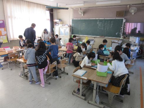 1時間目は生活科の授業でした。ドングリを使ったおもちゃを作りました。