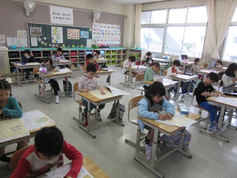5時間目は国語のテストをしました。
