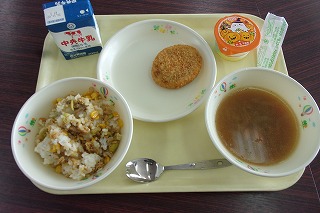 ツナピラフ、牛乳、コロッケ、オニオンスープ