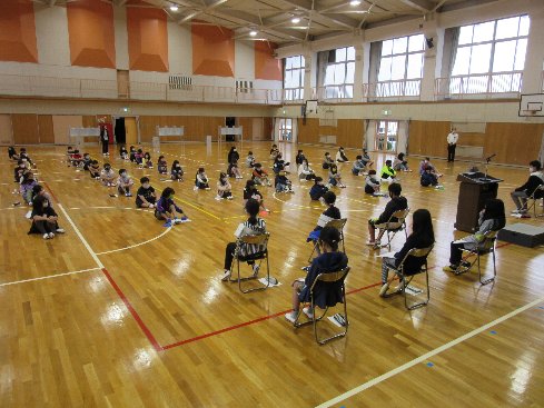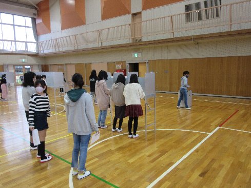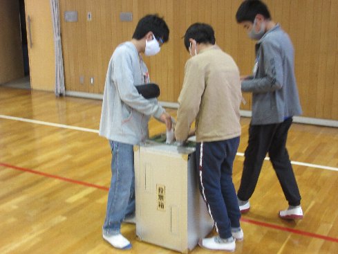 業前に、後期児童会役員選挙を行いました。例年は視聴覚室に3学年が入って立会演説会を行うという方法でしたが、密を避けるために体育館で行いました。さらに、あま市の選挙管理委員会から選挙機材をお借りして、本物の選挙さながらに投票を行いました。