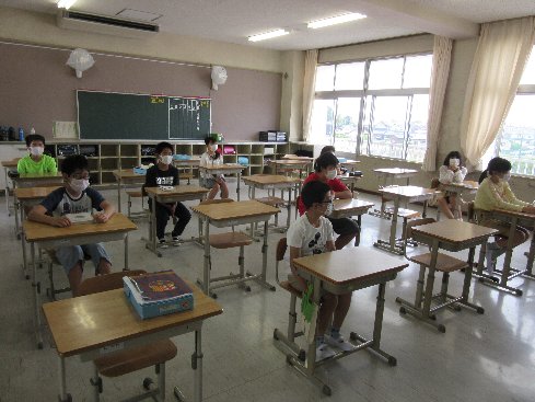 久しぶりの登校に、うれしそうな笑顔が並んでいました。健康観察でも、みんな問題なし。きちんと生活できていたようです。秋竹小学校の顔として、よろしくお願いします。