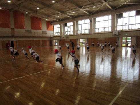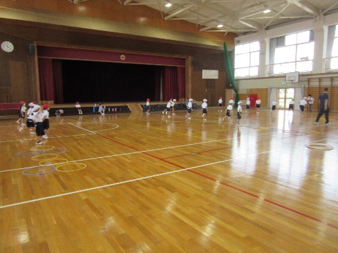 3時間目は体育の授業でした。片足跳びで「けんけんぱ」に挑戦しました。