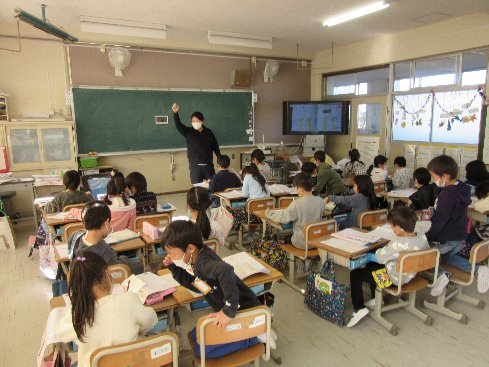 5月11日(金)2時間目は国語の授業でした。小テストの答え合わせをしました。大型モニターに映しながら、進めていきました。