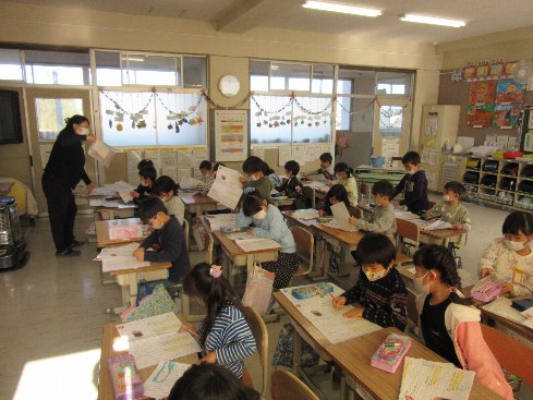 6月5日(火)4時間目は国語の授業でした。ひらがなワークを進めて、できた子から順番に先生に見てもらいました。