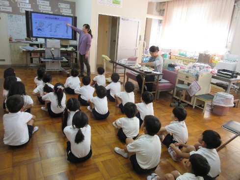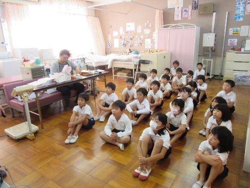 2時間目は発育測定を行いました。11月に入ったと言うことで、良い姿勢について教えてもらった後、体重を測りました。