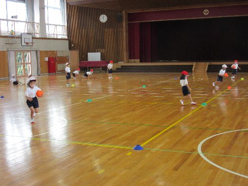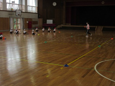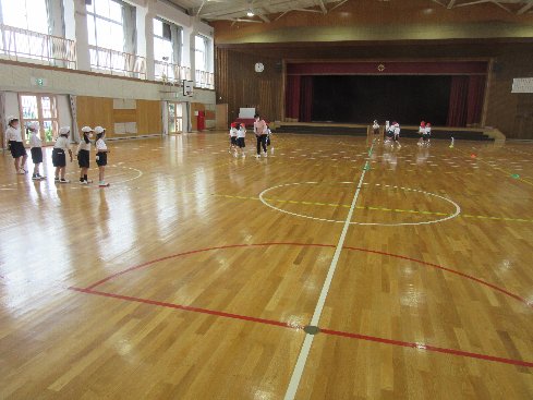 3時間目は体育の授業でした。体育館で、ぐるぐるリレーを行いました。