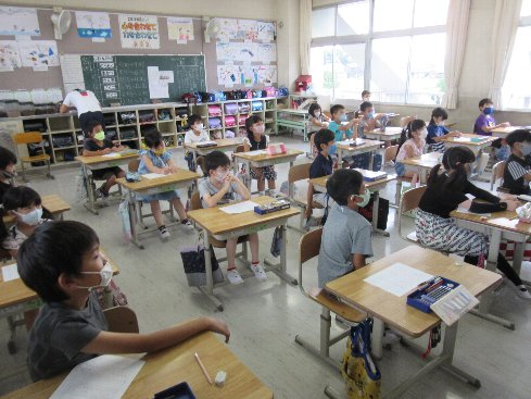 1時間目は道徳の授業でした。「みほちゃんととなりのせきのすすむくん」を題材に、友達関係について考えました。