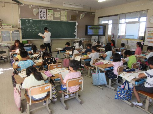 6月5日(火)4時間目は国語の授業でした。ひらがなワークを進めて、できた子から順番に先生に見てもらいました。