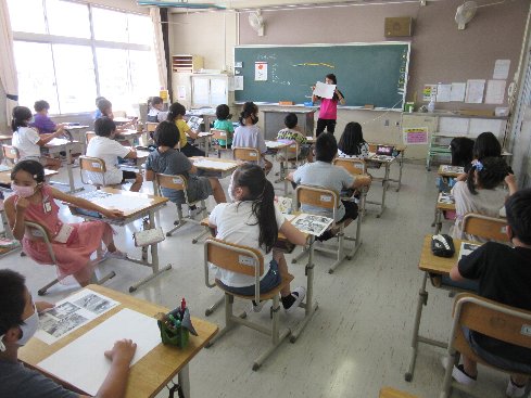 3・4時間目は図画工作の授業でした。「まぼろしの花」を描きました。