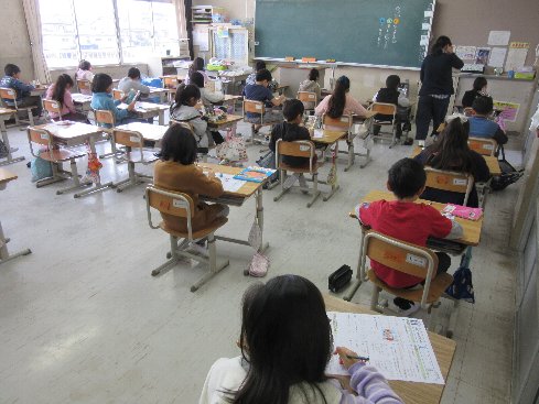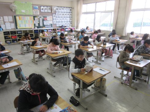 1時間目は国語の授業でした。「すがたを変える大豆」のテストをしました。