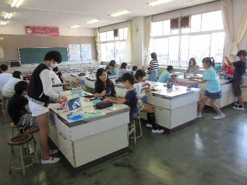 2時間目は家庭科の授業でした。ボタン付けをしました。