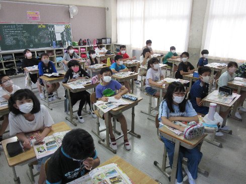 1時間目は英語の授業でした。Where do you live?を使って表現しました。