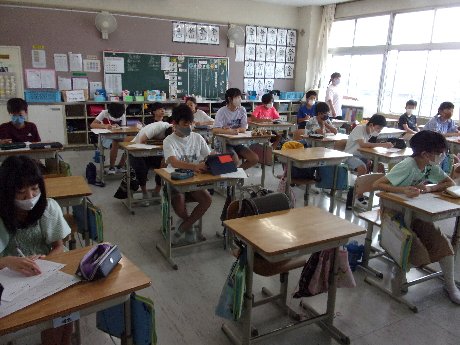 1時間目は外国語の授業でした。夏休みの思い出をそれぞれ文にまとめて発表しました。