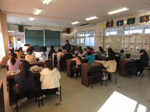 2時間目は音楽の授業でした。「ふじ山」を歌うために、範唱のCDを聴きました。
