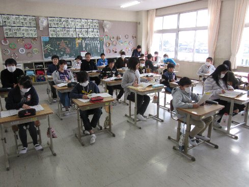 4月17日(火)今日は全国学力学習状況調査でした。1日中、テスト漬でしたが、しっかりと落ち着いて取り組みました。