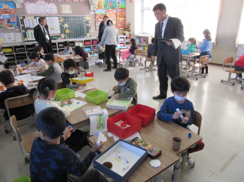3時間目は生活科の授業でした。「たのしもう あき」という内容で、秋の自然物でおもちゃを作りました。