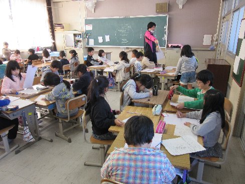 4月20日(金)1時間目の授業は算数でした。「学んだことを生かそう」ということで、早く解けた人が、なかなかわからない子の「小さな先生」になって、全員が○をもらえるように頑張ろうということでした。