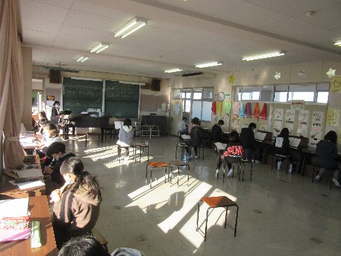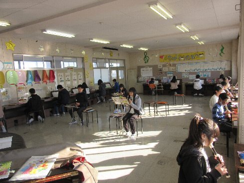 1時間目は音楽の授業でした。「雨のうた」をアルトリコーダーで演奏しました。