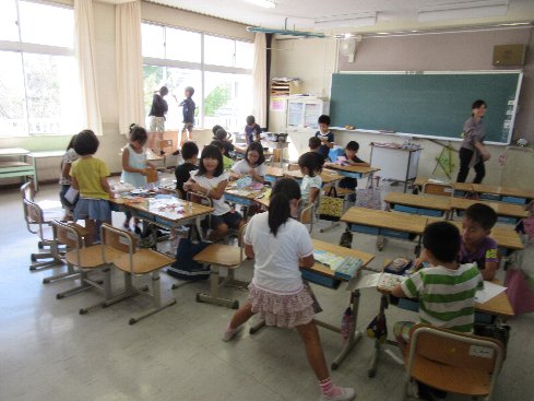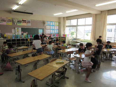 1時間目は生活科の時間でした。前期に取り組んできた会社活動のまとめをしました。