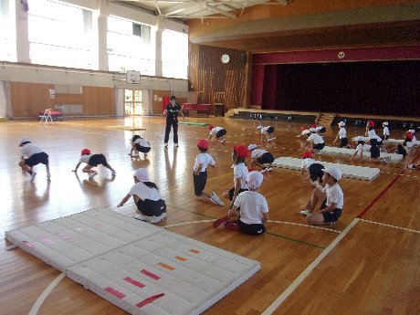 2時間目は体育の授業でした。いろいろな動物になりきって、体を動かしました。