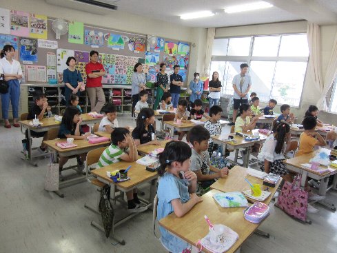 1時間目は授業参観でした。正しい歯の磨き方を考えるために染め出しをして、歯の状態をチェックしました。