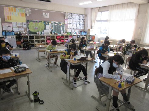 2時間目は国語の授業でした。「オオカミに教えられたこと」について学習しました。