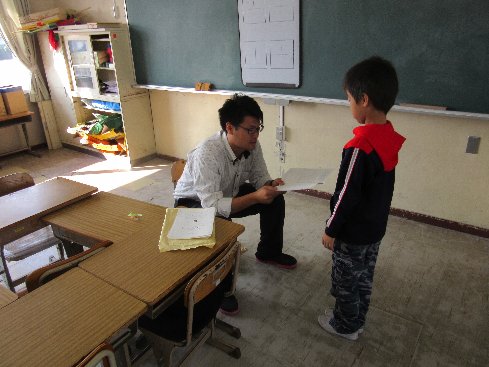 1時間目は通知表を渡しました。終業式とを終えて、早速、一人一人に通知表を手渡しました。前期のがんばりについて、一言ずつ声をかけてもらっていました。待っている人たちは、読書か漢字ドリル。静かに取り組んでいました。