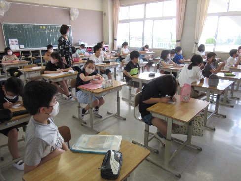 1時間目は、前回描いた自己紹介カードのしあげをしました。