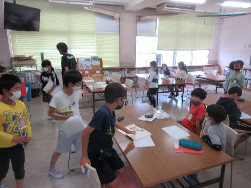 3時間目は国語の授業でした。図書館の達人になろうということで、高学年図書室に行って、実際に図書室の工夫を探しました。