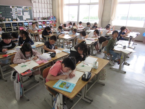 3時間目は国語の授業でした。「きつつきの商売」の第2段落の読み取りをしました。