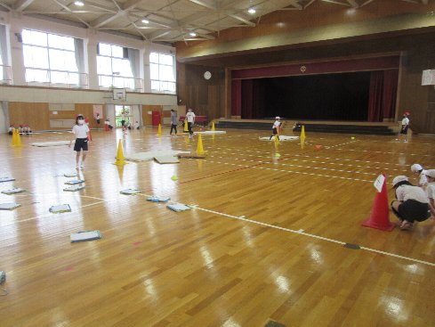 2時間目は体育の授業でした。はさみ跳びの練習を、課題ごとに分けて練習しました。