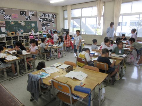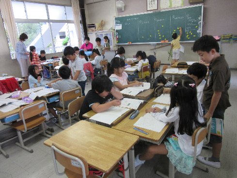 5月30日(水)3時間目は算数の授業でした。章末問題に取り組みました。早くできた子が「小さい先生」になって、理解がまだの子のお手伝いをしていました。