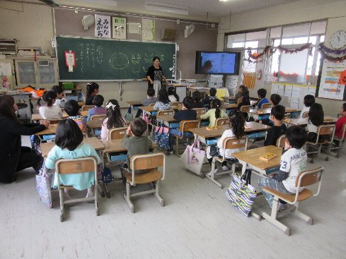 2時間目は初めての英語の授業でした。英語教室でALTの先生と楽しく英語の勉強をしました。