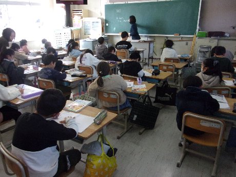 1時間目は算数の授業でした。長いものさしで長さを測る学習を行いました。