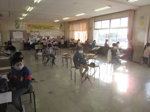 1時間目は、音楽の授業でした。オーラリーをアルトリコーダーで演奏してから、「もみじ」を輪唱するときい注意することを考えました。