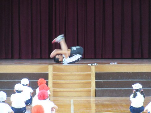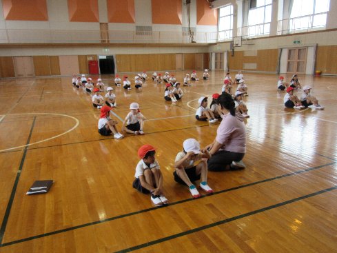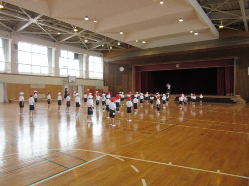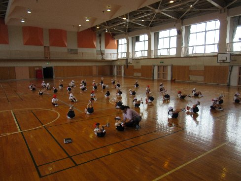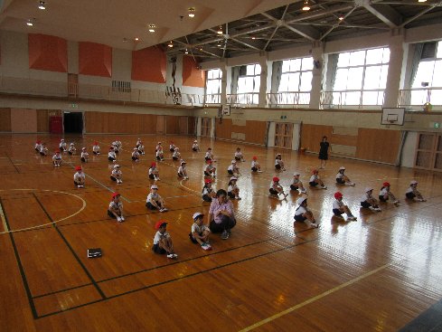 2時間目は2年生と合同体育をしました。マット運動に入る前の、体の動かし方について、安藤先生の指導で練習しました。