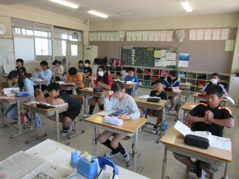 1時間目は国語の授業でした。「学級討論会をしよう」という題材で、実際に肯定側と否定側とに分かれて討論する準備をしました。