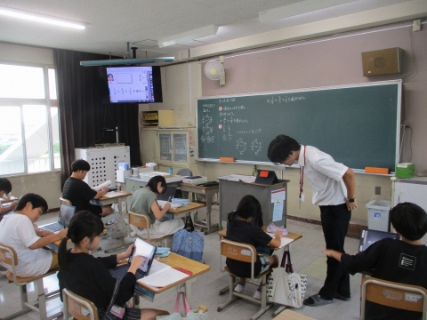 通分の手順を式や図を使って説明する学習に取り組んでいました。説明することで、さらに理解を深めていました。