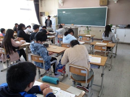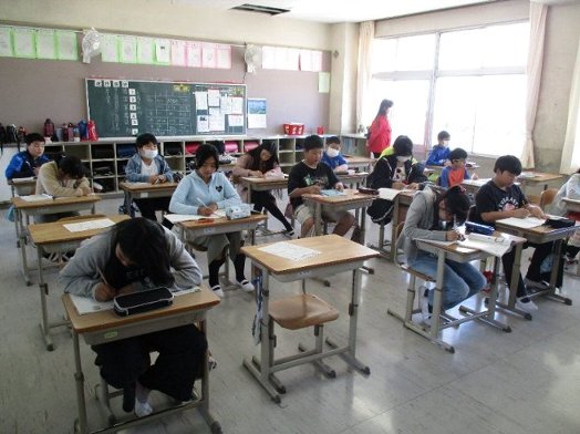 1時間目は算数の授業でした。「図形の面積を工夫して求めよう」という内容で、どうやったら求められるか考えました。