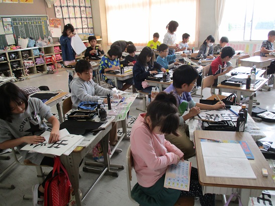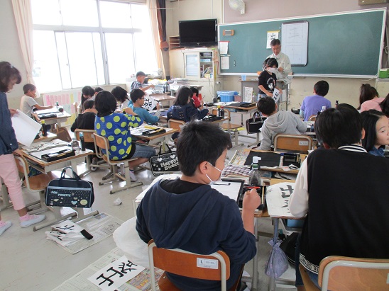 4月27日(金)2時間目は書写の授業でした。始筆、終筆に気をつけて書くように指導を受けていました。