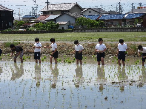 2時間目は田植えをしました。さすがに2回目の経験と言うことで、とても上手に行うことができました。