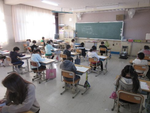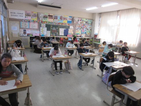 1時間目は算数の授業でした。テストをしました。