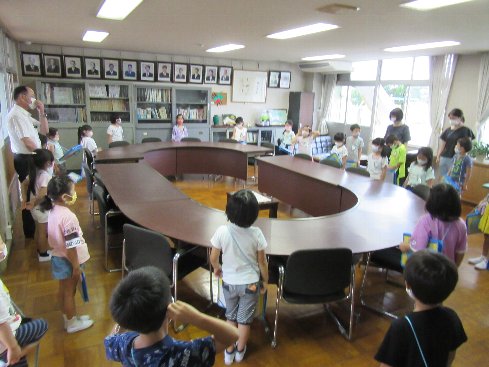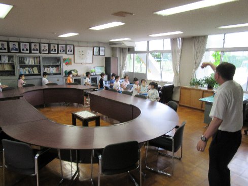 1時間目は生活科の授業でした。今日は、実際に校長室に探検に出かけました。校長室に入らせてもらって、校長先生にいろいろ質問をしました。