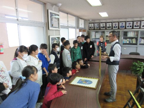 4時間目は校長室で、シャガールの絵について校長先生からの特別授業を受けました。本物のシャガールの絵を間近に見て、美術専門の校長先生からレクチャーを受けました。